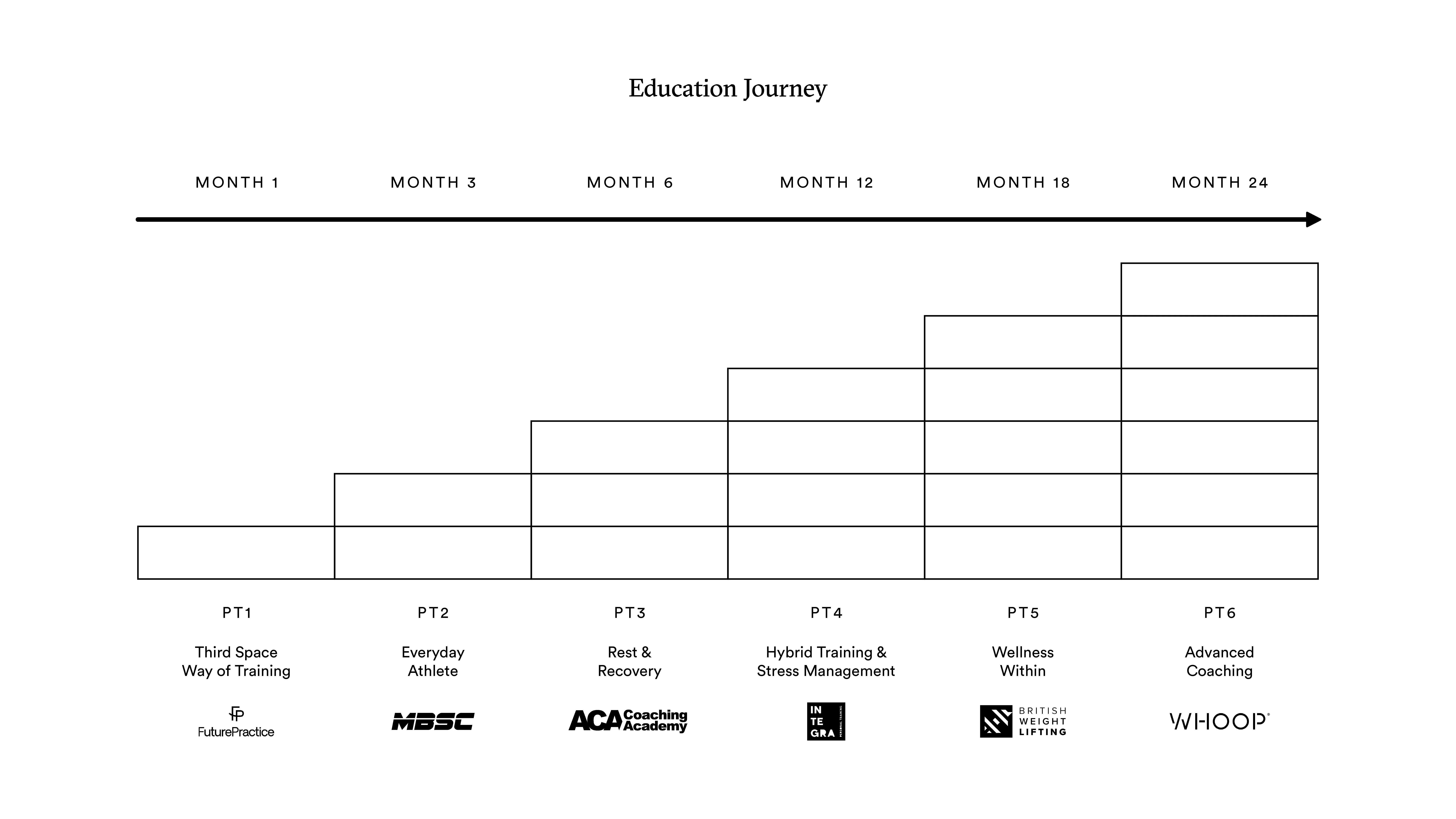 You’ll progress through six structured stages, supported by partners including MBSC, Whoop, ACA Coaching Academy, and British Weight Lifting.