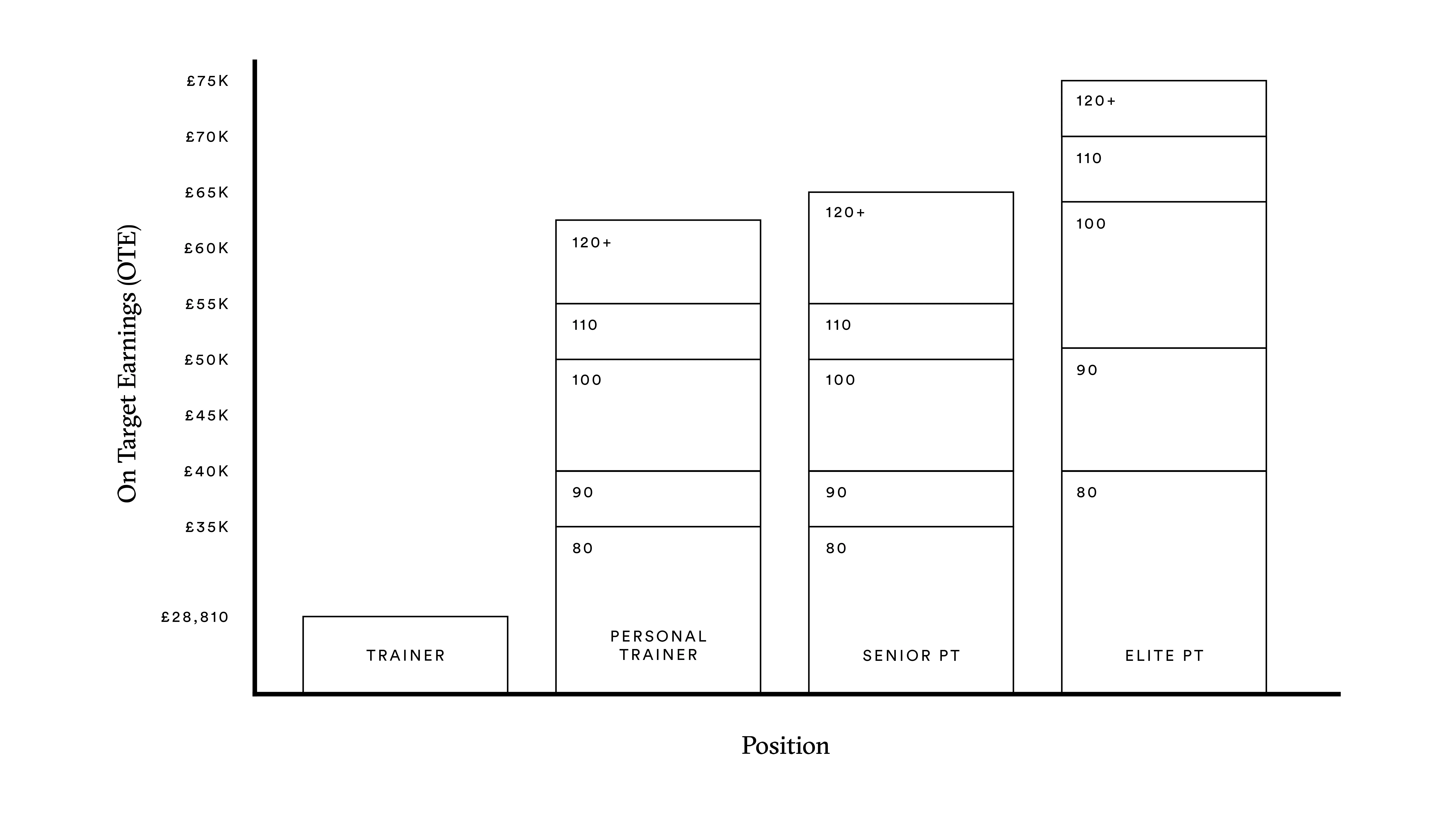 – Higher session volumes and progression to Senior or Elite PT can lead to earnings upwards of £75k.