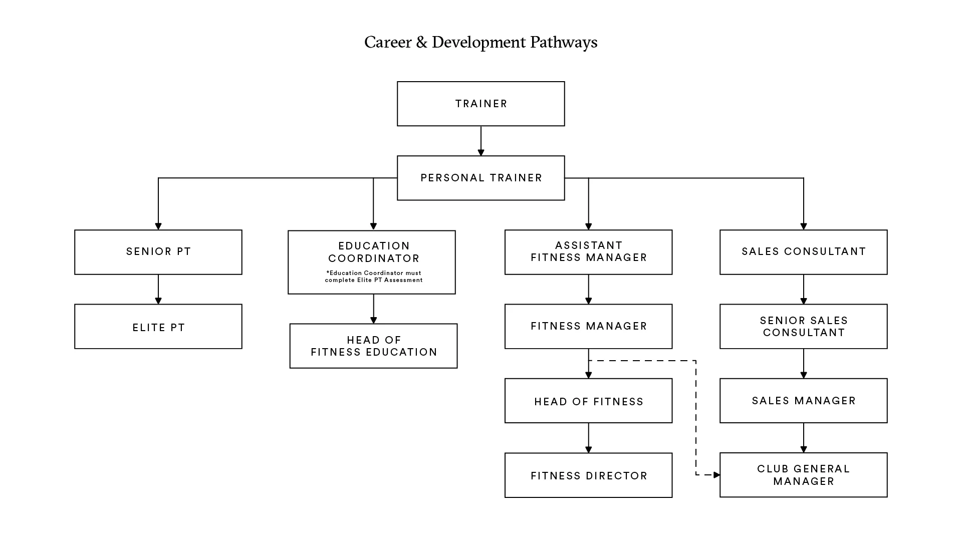 Step into management roles such as Assistant Fitness Manager, Fitness Manager or even General Manager.